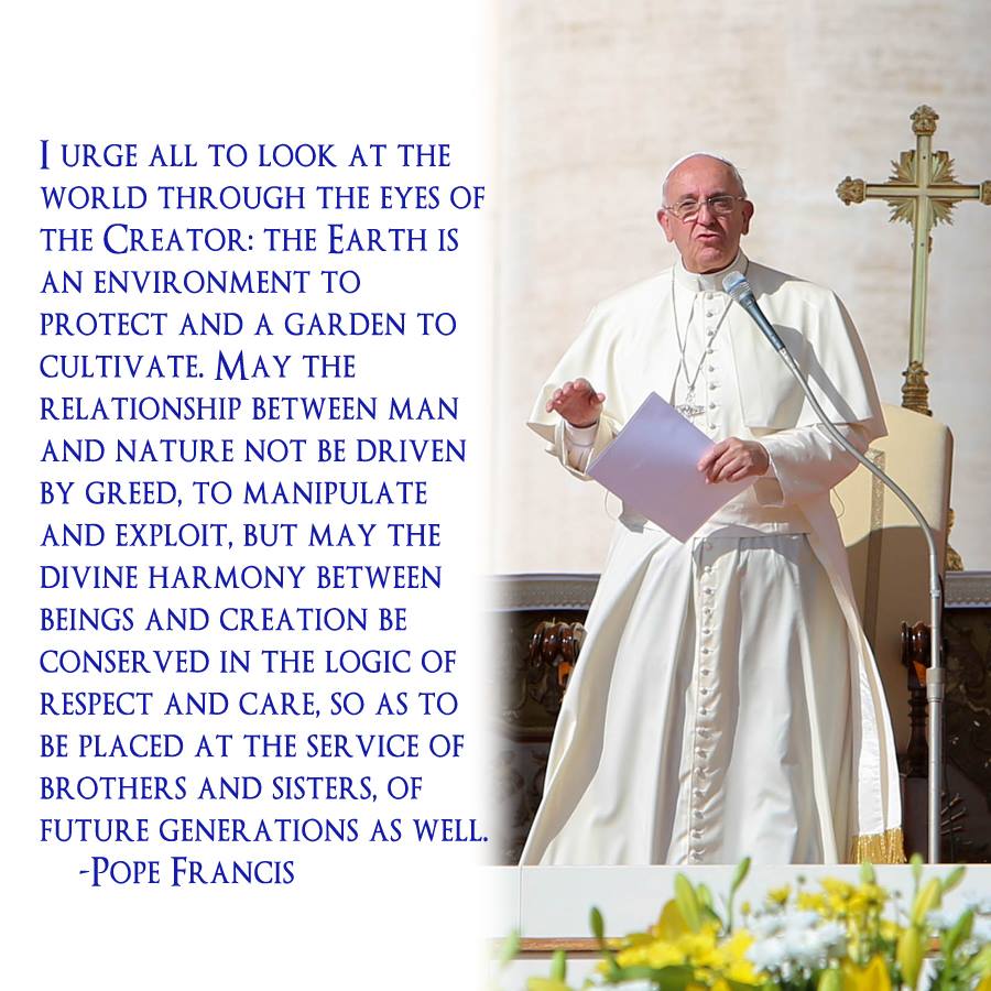 POPE FRANCIS ON THE ENVIRONMENT June 30, 2015July 1, 2015 / Ken Finton BREAKING NEWS: THE DALIA LAMA ENDORSES POPE’S STAND ON THE ENVIRONMENT http://ecowatch.com/2015/06/29/dalai-lama-pope-encyclical/ Share this: Click to share on X (Opens in new window) X Click to share on Facebook (Opens in new window) Facebook Click to share on Tumblr (Opens in new window) Tumblr Click to share on Pocket (Opens in new window) Pocket Click to share on LinkedIn (Opens in new window) LinkedIn Click to share on Reddit (Opens in new window) Reddit Like Loading...